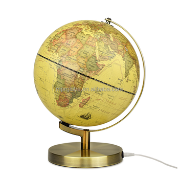 Vintage LED Illuminated Globe with Antique Brass Base Customizable OEM Home/Office Decor & Educational Geography Gift